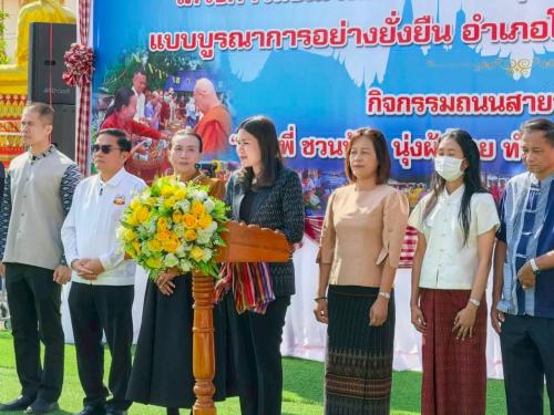 สพอ.โนนแดง ร่วมโครงการส่งเสริมการพัฒนาคุณภาพชีวิตประชาชนในพื้นที่แบบบูรณาการอย่างยั่งยืน กิจกรรมถนนสายวัฒนธรรม "ชวนพี่ ชวนน้อง นุ่งผ้าไทย ทำบุญตักบาตร แบ่งปันน้ำใจ" ตำบลโนนตาเถร