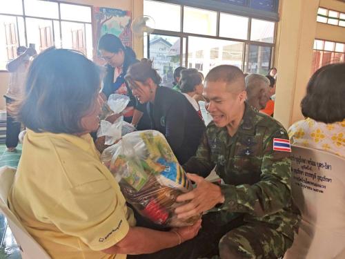 สพอ.โนนแดง ร่วมมอบถุงยังชีพจากโครงการขับเคลื่อนอำเภอพูนสุขเพื่อพัฒนาคุณภาพชีวิตของพี่น้องประชาชน กิจกรรมถนนสายวัฒนธรรม "ชวนพี่ ชวนน้อง นุ่งผ้าไทย ทำบุญตักบาตร แบ่งปันน้ำใจ" ตำบลโนนตาเถร ให้แก่ครัวเรือนยากจน ผู้สูงอายุ ผู้พิการ ผู้ด้อยโอกาส และกลุ่มเปราะบาง